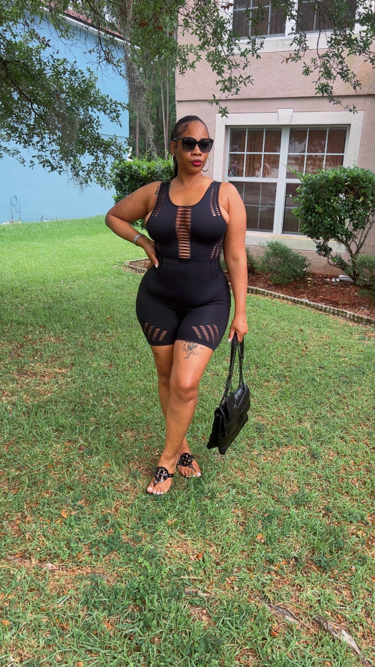 Cute, sleek, yet simple. Step out in style in our Rhonda Romper and look stylish while doing it.
